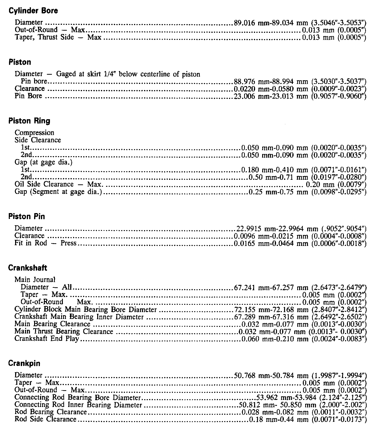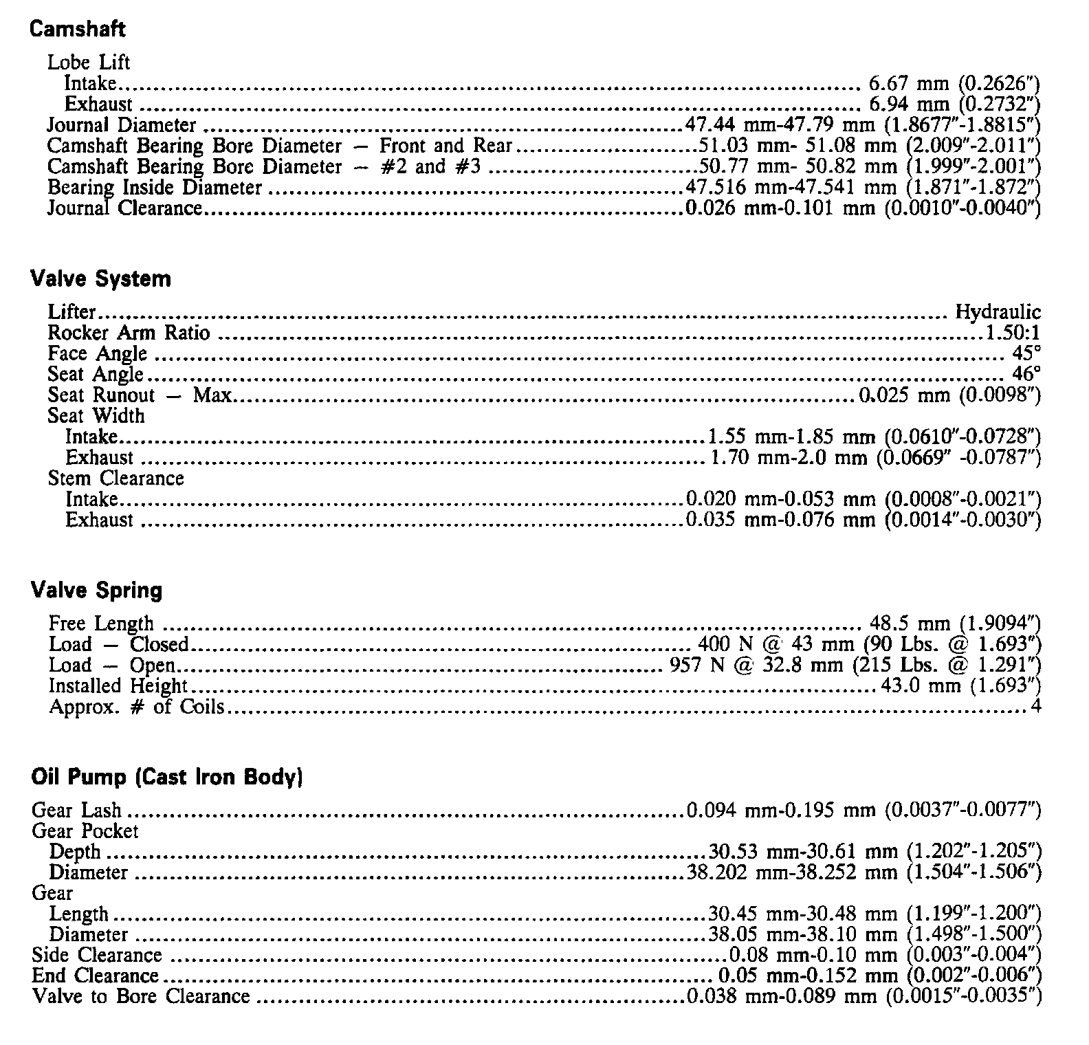Continued Engine Specifications: