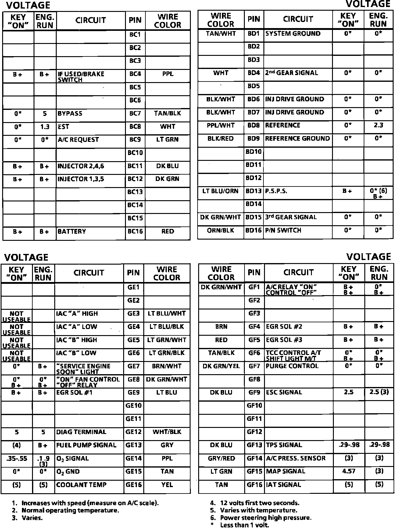 ECM Connector Pin-Out: