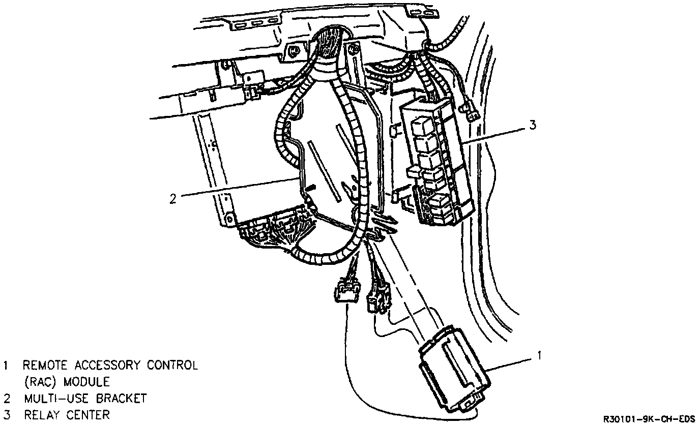 Behind RH side of IP, on RH side of PCM bracket