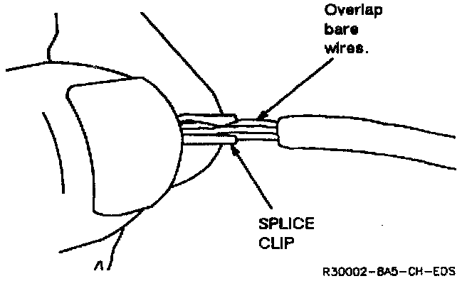 Crimp the splice again, once on each end. Do not let the crimping tool extend beyond the edge of the clip or you may damage or nick the wires.