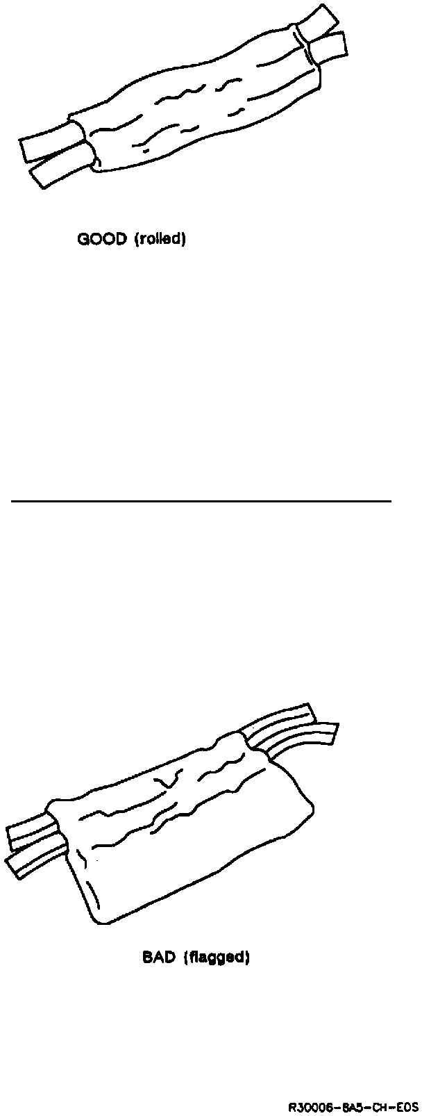 Use splicing tape or duct tape when taping splices. Do not use standard electrical tape. Center and roll the splicing tape. The tape should cover the entire splice. Roll on enough tape to duplicate the thickness of the insulation on the existing wires. Do not flag the tape. Flagged tape may not provide enough insulation, and the flagged ends will tangle with the other wires in the harness.