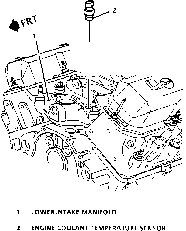 The engine coolant temperature (ECT) is located in the front of the intake manifold.