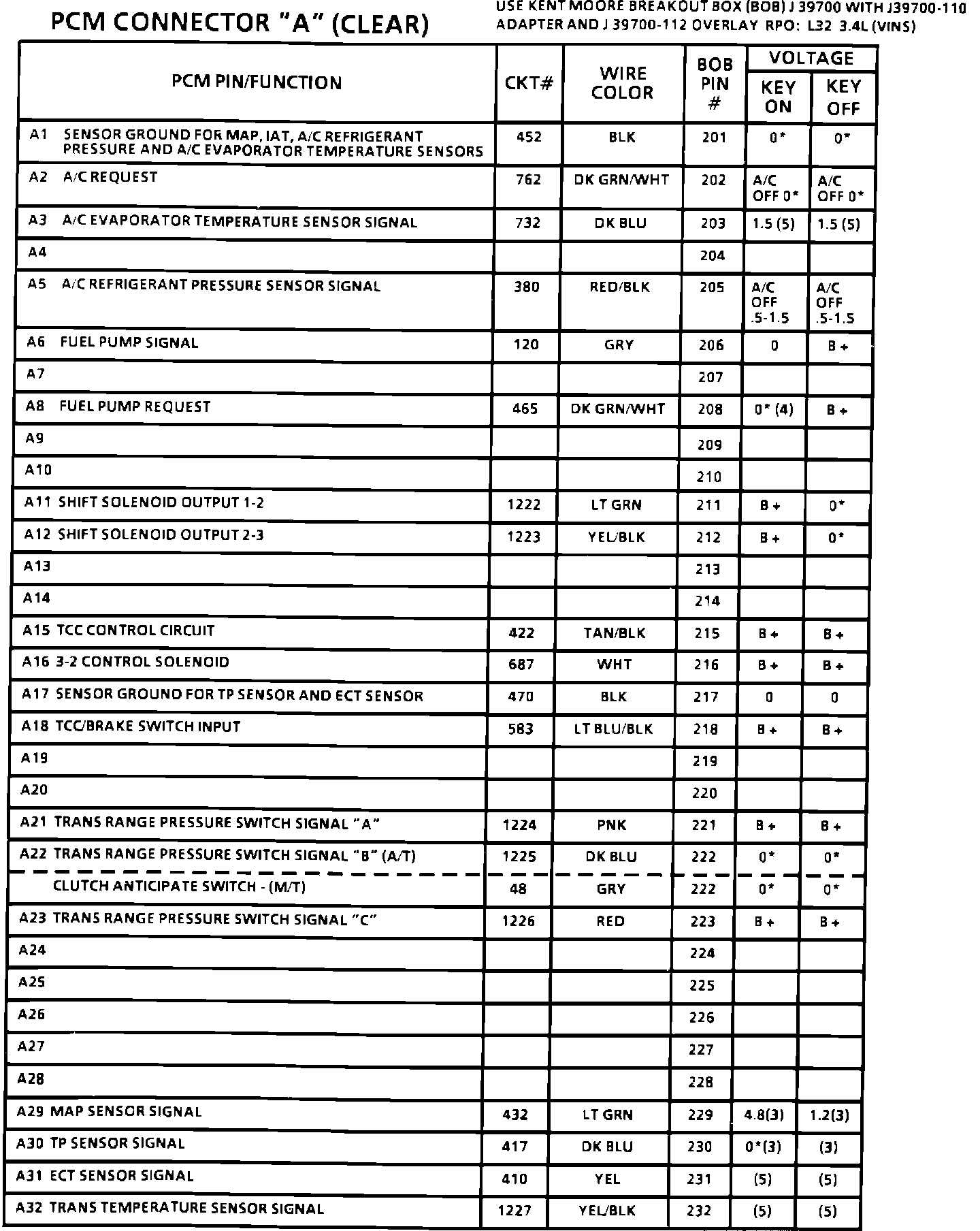 PCM Connector Voltages: