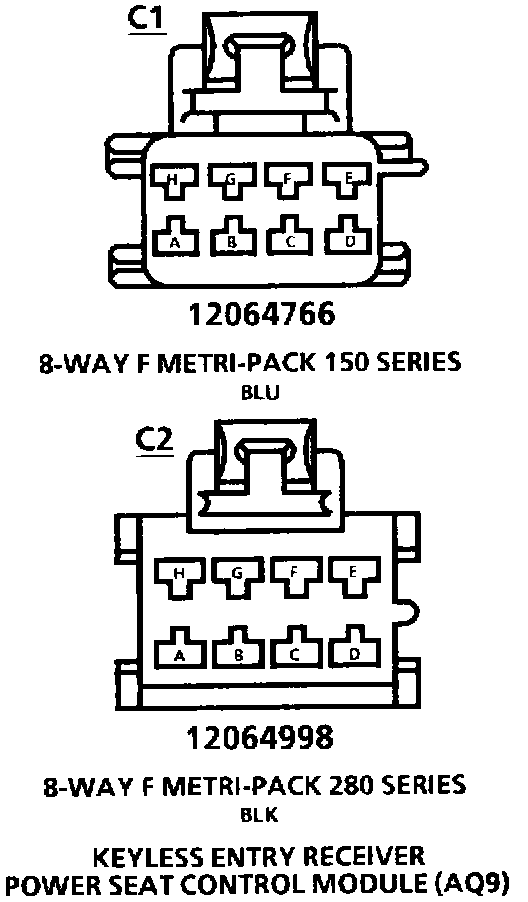 Keyless Entry Receiver, Power Seat Control Module (AQ9): C1 & C2:
