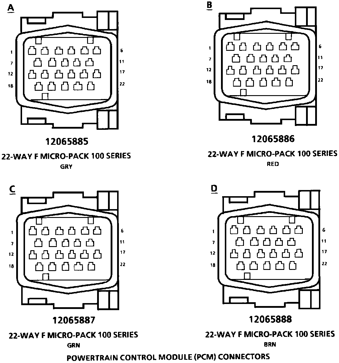Powertrain Control Module (PCM) Connectors: