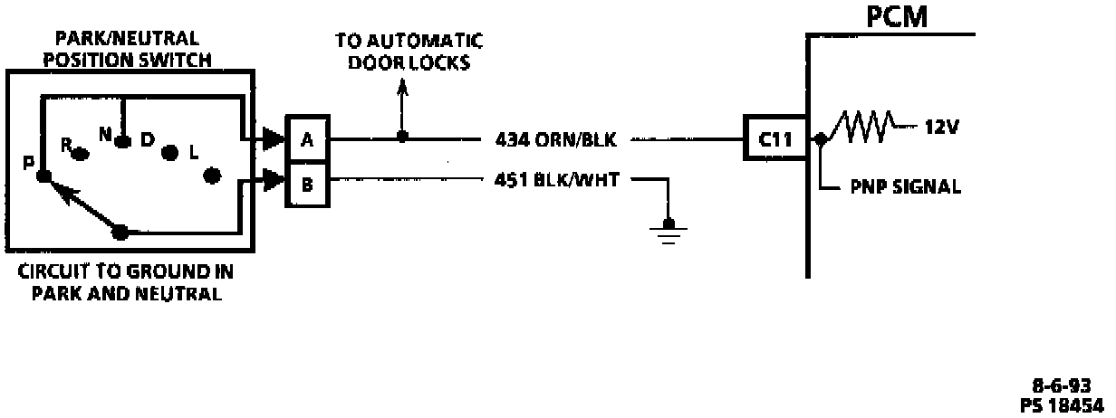 The Park/Neutral Position (PNP) switch contacts are a part of the neutral start switch and are closed ground in park or neutral, and open in drive ranges.