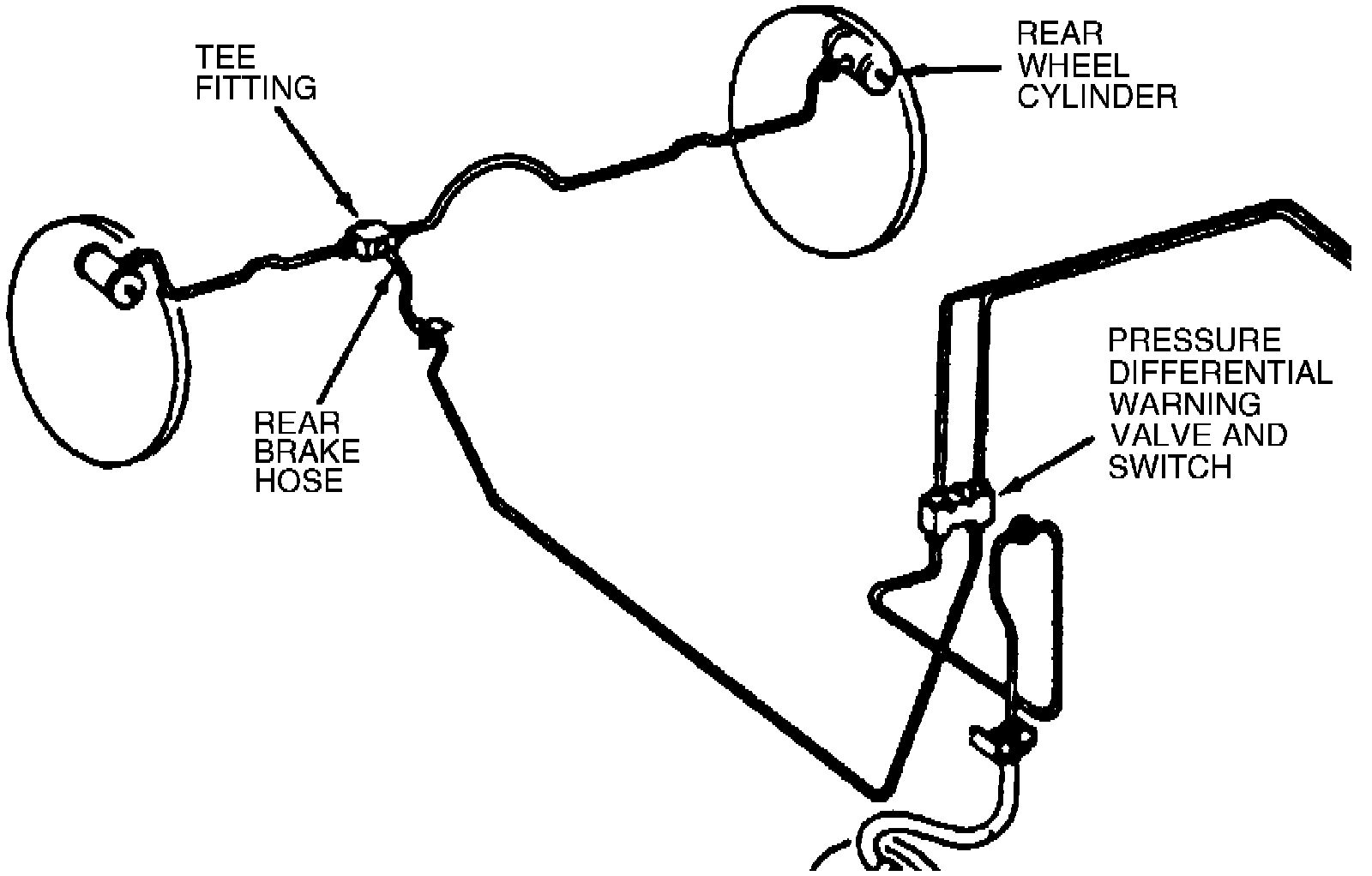 If the front (primary) brake system fails, initial brake pedal movement will cause the unrestricted primary piston to bottom out against the secondary piston. Continued downward movement of the brake pedal moves the secondary piston to displace hydraulic fluid in the rear brake system to actuate the rear brakes.