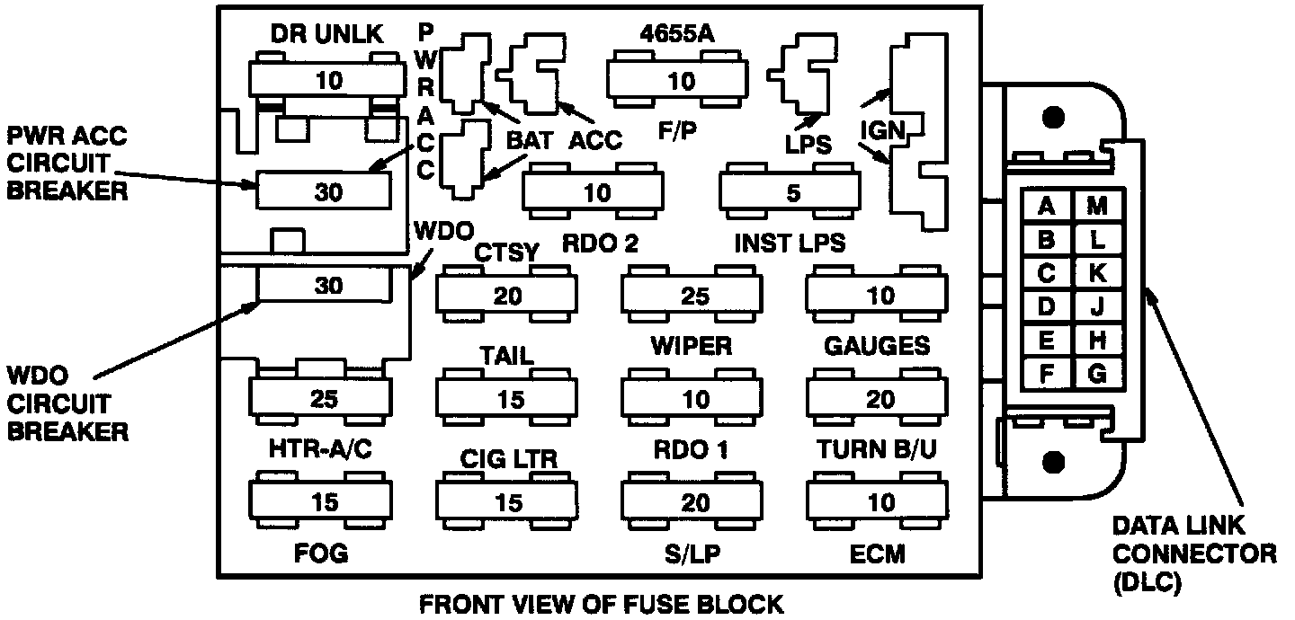 Fuse Block Details: Front View Of Fuse Block: