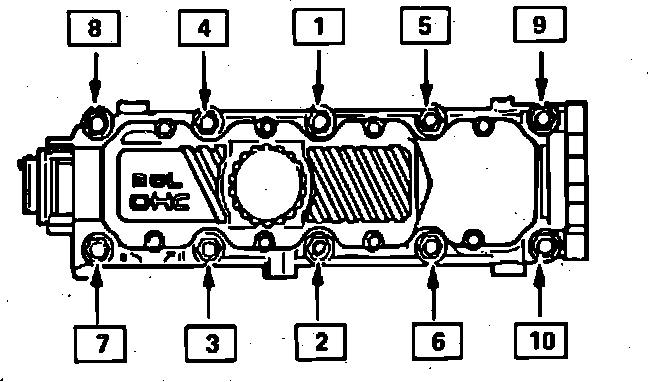Fig. 6 Cylinder Hard/camshaft Carrier Bolt Tightening Sequence: