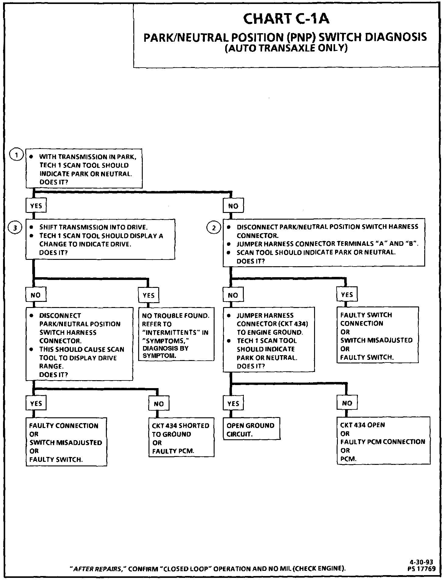 If CKT 434 indicates PNP (grounded), while in drive range, the EGR would be inoperative, resulting in possible detonation.