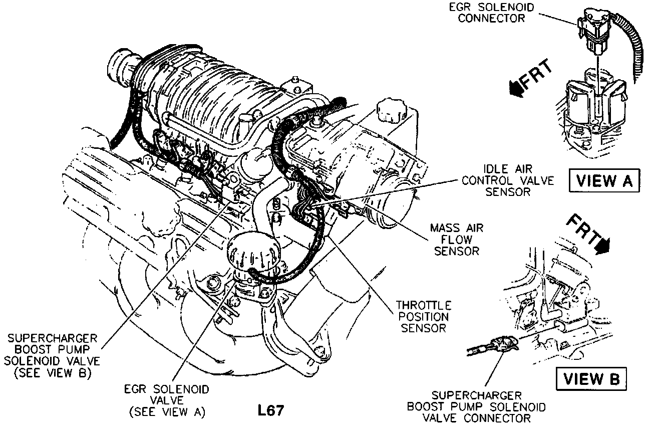 Engine Wiring, Supercharger And EGR Valve Area: