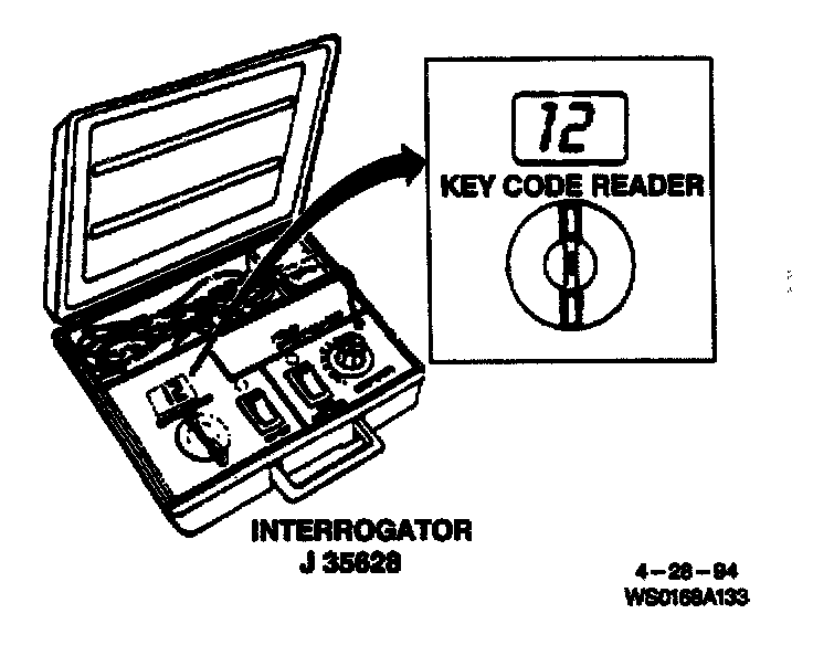 ^ Before connecting the Interrogator to the ignition lock cylinder circuit, always verify vehicle key code and set the code into the Interrogator using "key code" knob. This will prevent programming an unprogrammed Theft Deterrent module with an undesired key code.