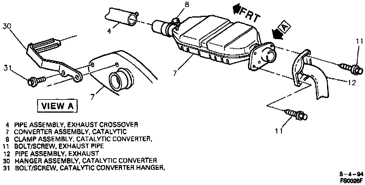 4. Exhaust pipe assembly (12) from catalytic converter assembly (7).