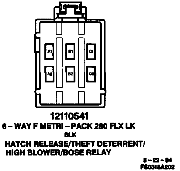 Harness Connector Face: Hatch Release/Theft Deterrent/High Blower/Bose Relay: