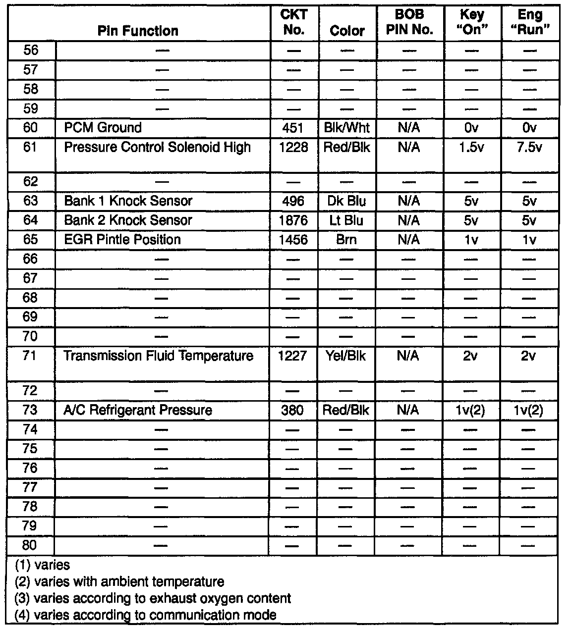 PCM 80-Way Clear Connector (J2) Details (Part 3 Of 3):