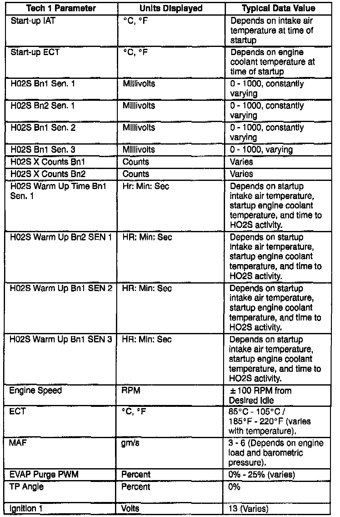 Scan Tool Data List