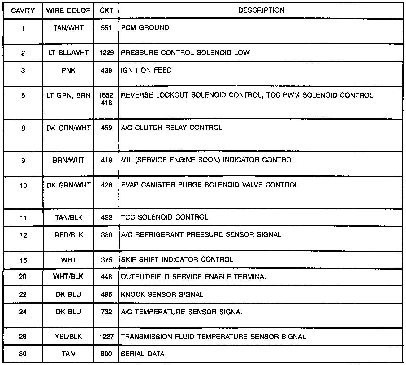 Wire Color And Description: