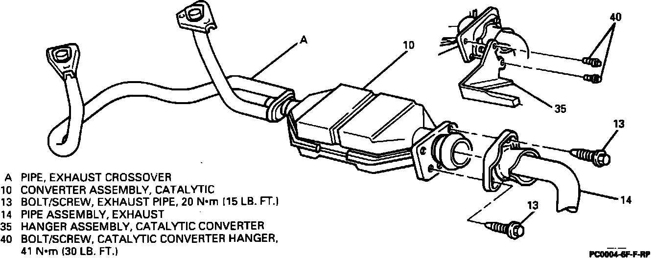 ^Catalytic converter hanger bolts/screws to 41 Nm (30 lb. ft.).