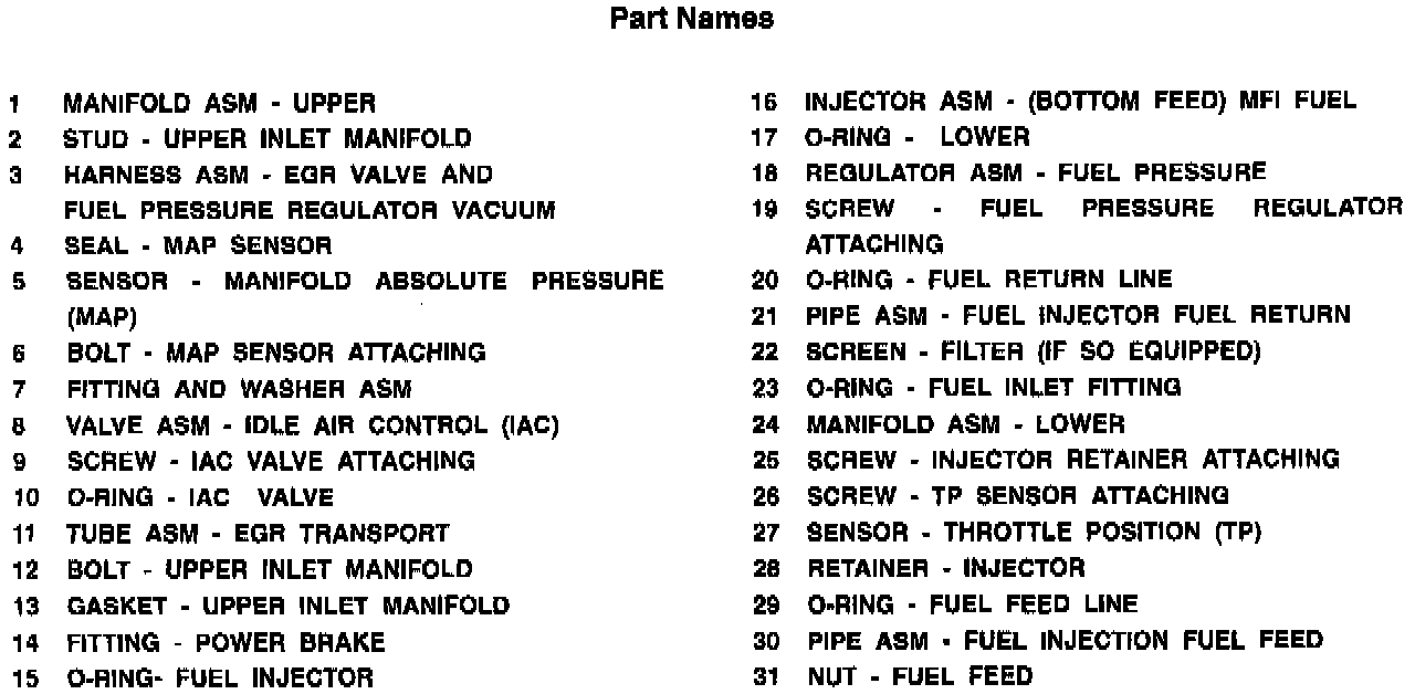 Upper & Lower Manifolds - Parts Legend: