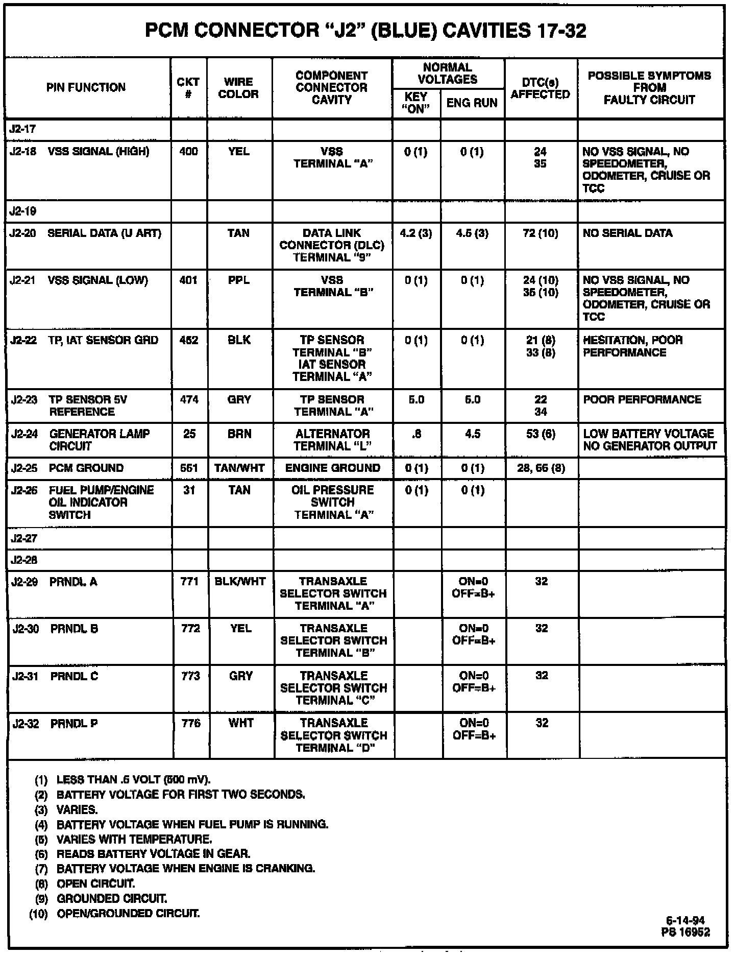 PCM Symptom Chart "j2" 17-32: