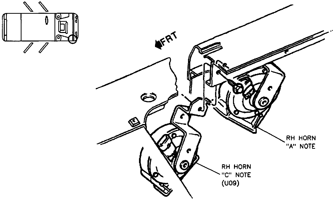 RH Front Of Engine Compartment, Attached To Upper Rail: