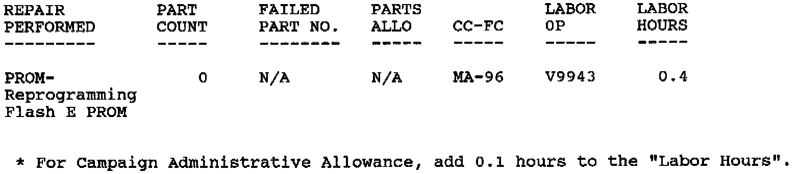 Each vehicle corrected in accordance with the instructions outlined in this Product Campaign Bulletin will require a "Campaign Identification Label". Each label provides a space to include the campaign number and the five (5) digit dealer code of the dealer performing the campaign service. This information may be inserted with a typewriter or a ball point pen.
