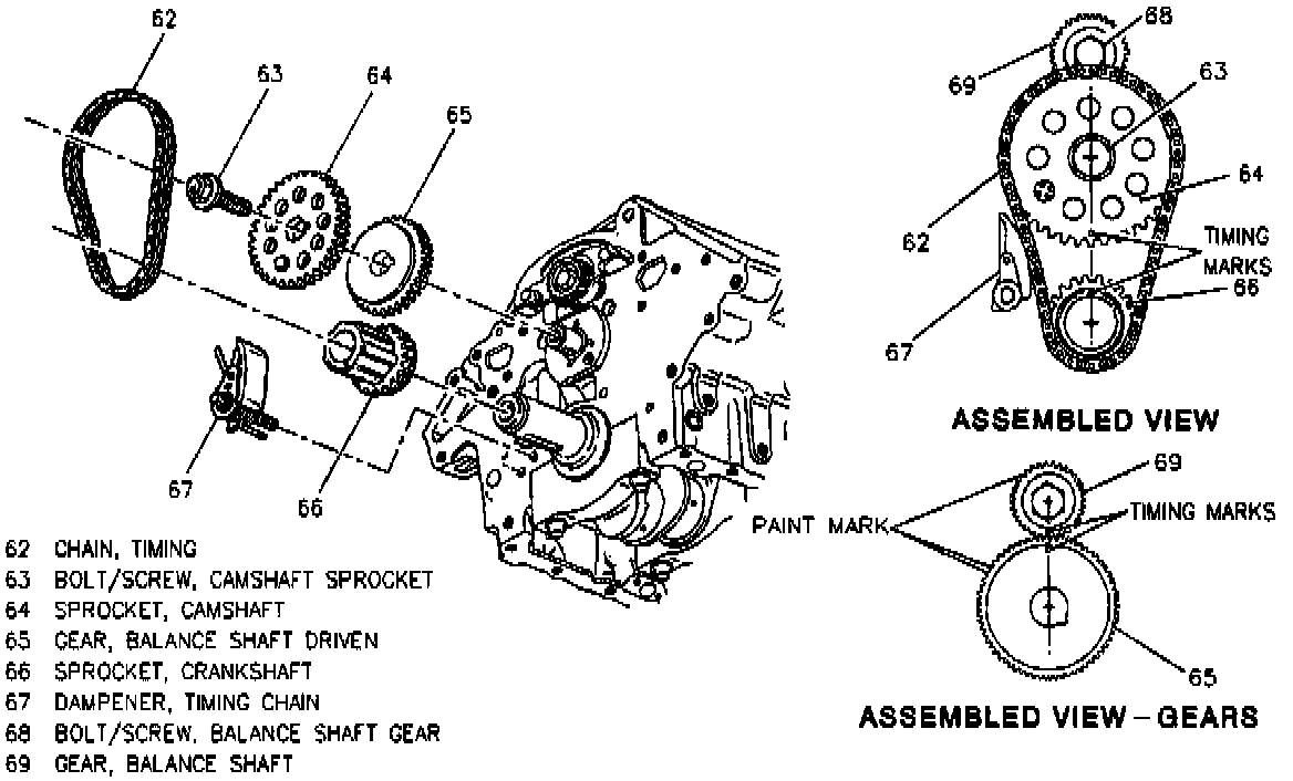 11. Install timing chain and camshaft sprocket. Timing gear lash is 0.002-0.005 inches, measured at four places, every 1/4 turn.