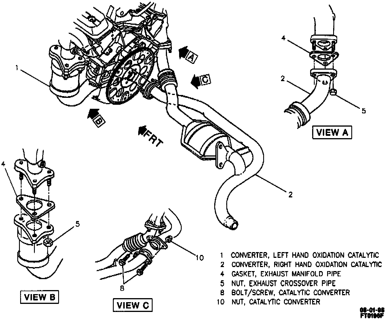 1. Left side catalytic converter (1) to vehicle.