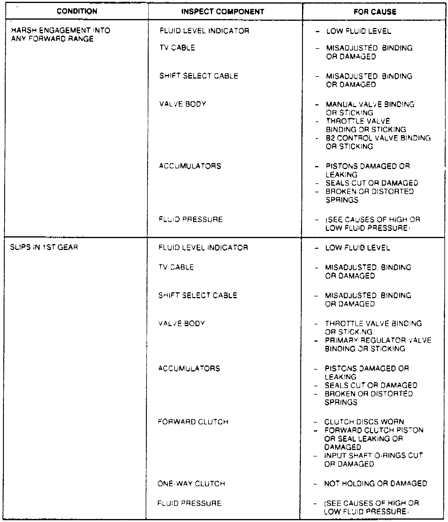 4. Accelerator cable, oil pressure control cable and selector cable are properly adjusted.