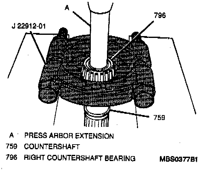 9. Right countershaft bearing from the countershaft using the J 22912-01, a press arbor extension and a press arbor.