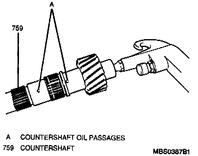 - Countershaft oil passages for obstructions by applying compressed air into the end of the countershaft. If air does not flow freely out of the countershaft oil the countershaft.