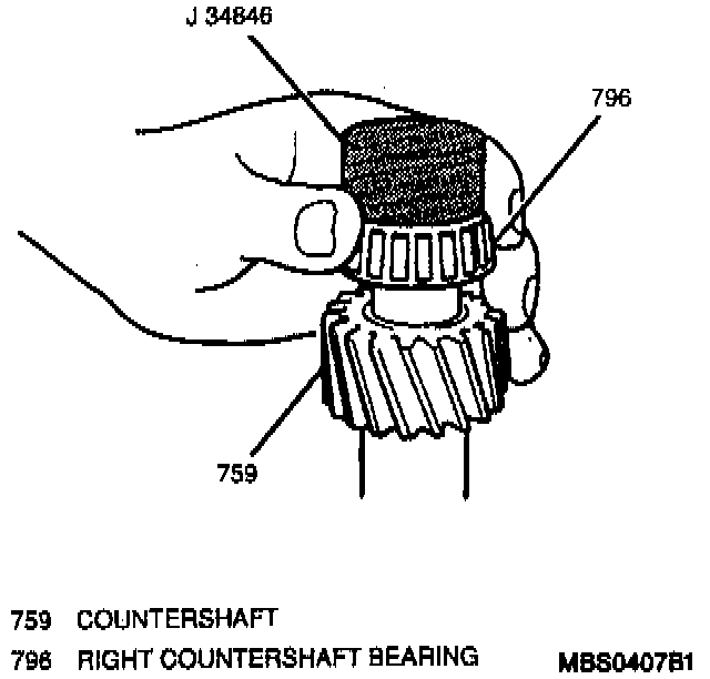 2. Right countershaft bearing onto countershaft using a J 34846 and a hammer.