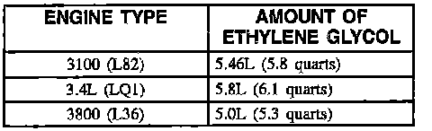 ^ When refilling the engine cooling system, add two engine coolant supplement sealant pellets, GM P/N 3634621 or equivalent and GM approved new Ethylene Glycol coolant antifreeze GM P/N 9985809.