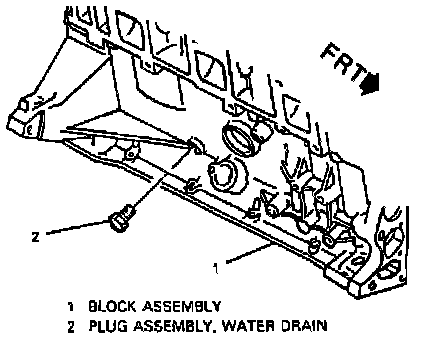 7. Remove the engine block drains. Remove both engine block drains. The front engine block drain is located between the starter and the engine oil filter. The rear engine block drain is located by the engine crank sensor.
