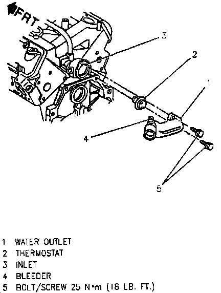 6. Remove the thermostat housing cap and thermostat or open the air bleed vents. Open the air bleed vents on the thermostat housing and above coolant pump. The air bleed vents should be opened two to three turns.