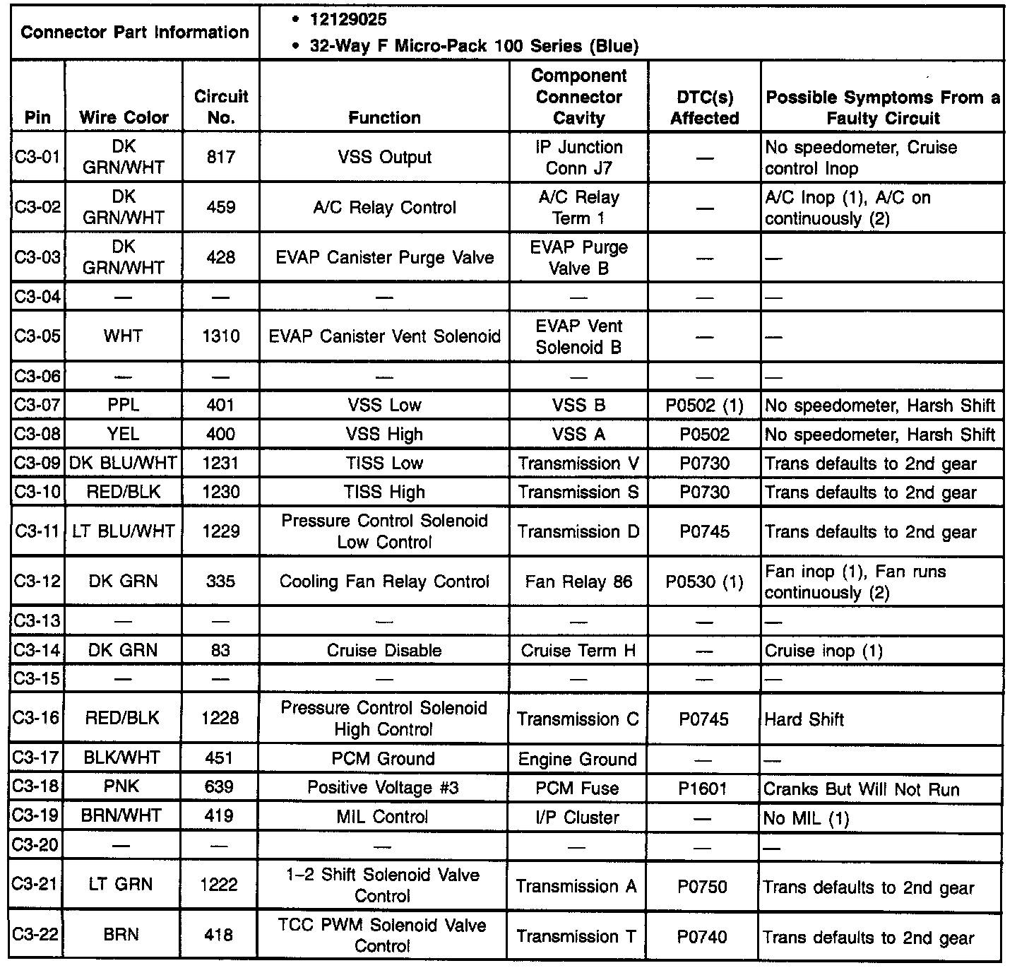 PINS C3-1 THRU C3-22