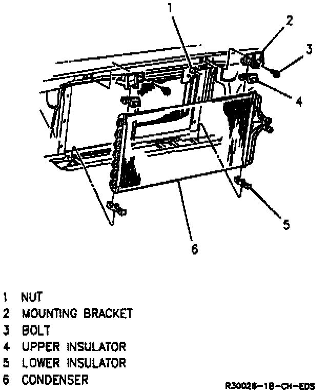 1. Condenser into position by tilting radiator toward engine.