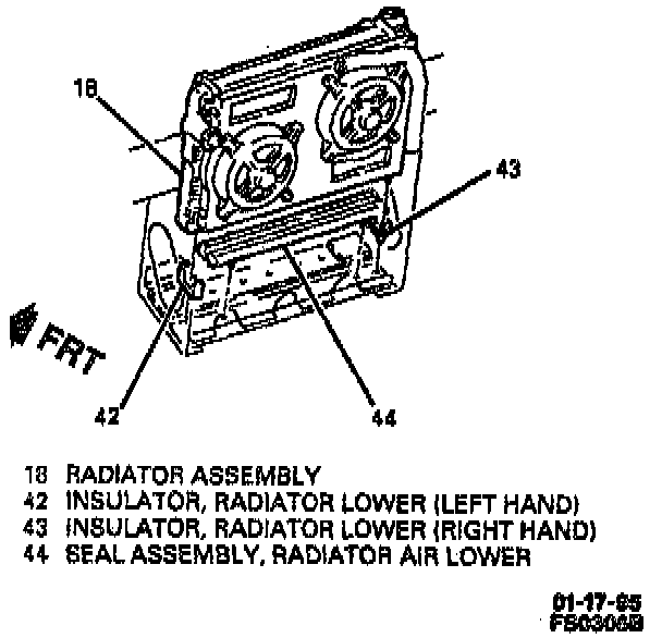 1. Radiator (18). Make sure radiator is seated on radiator insulators (42 and 43).