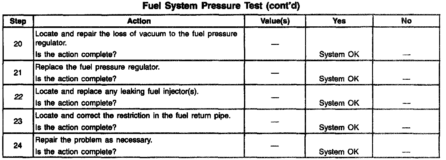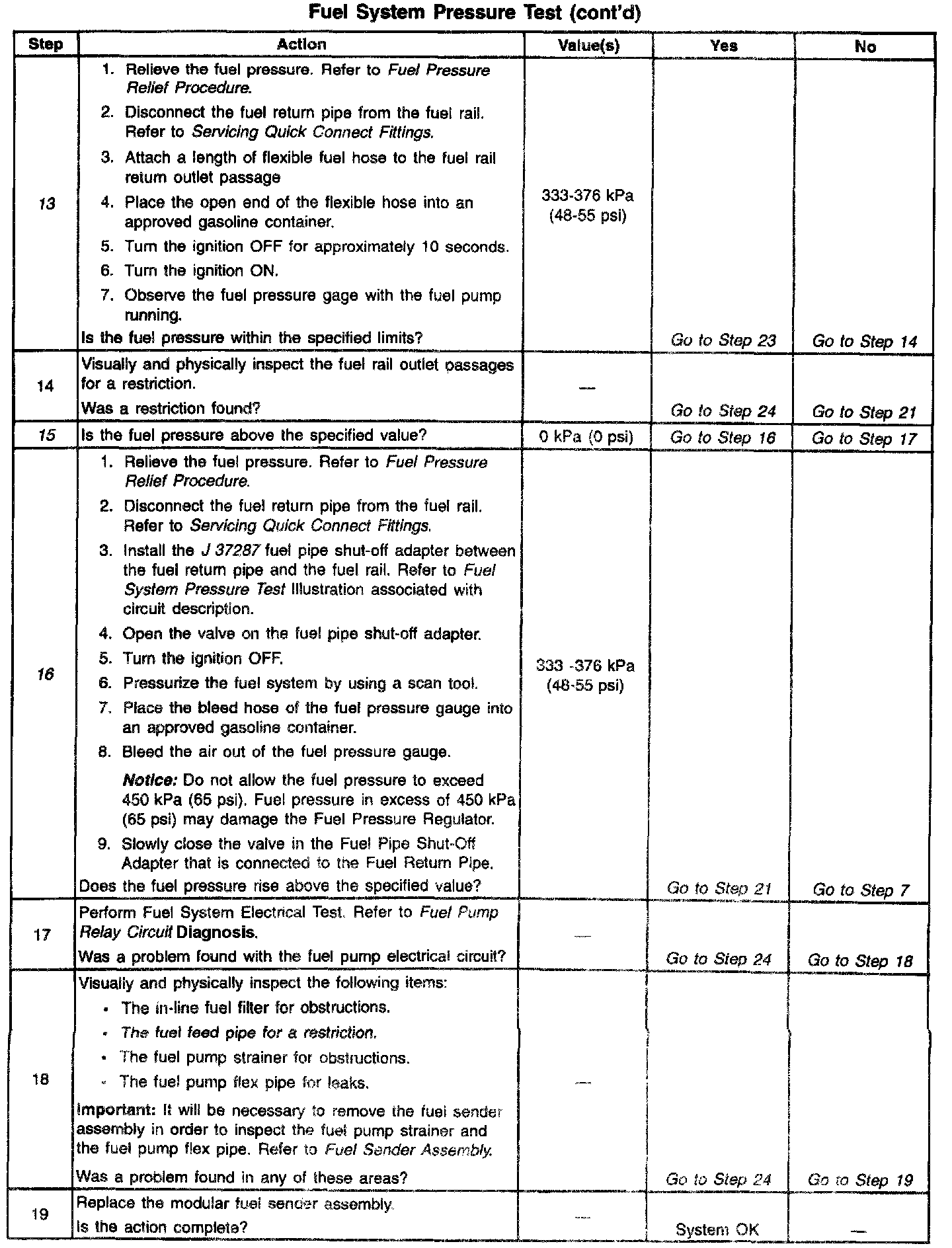 13. This test determines if the high fuel pressure is due to a restricted fuel return pipe or if the high fuel pressure is due to a faulty fuel pressure regulator.