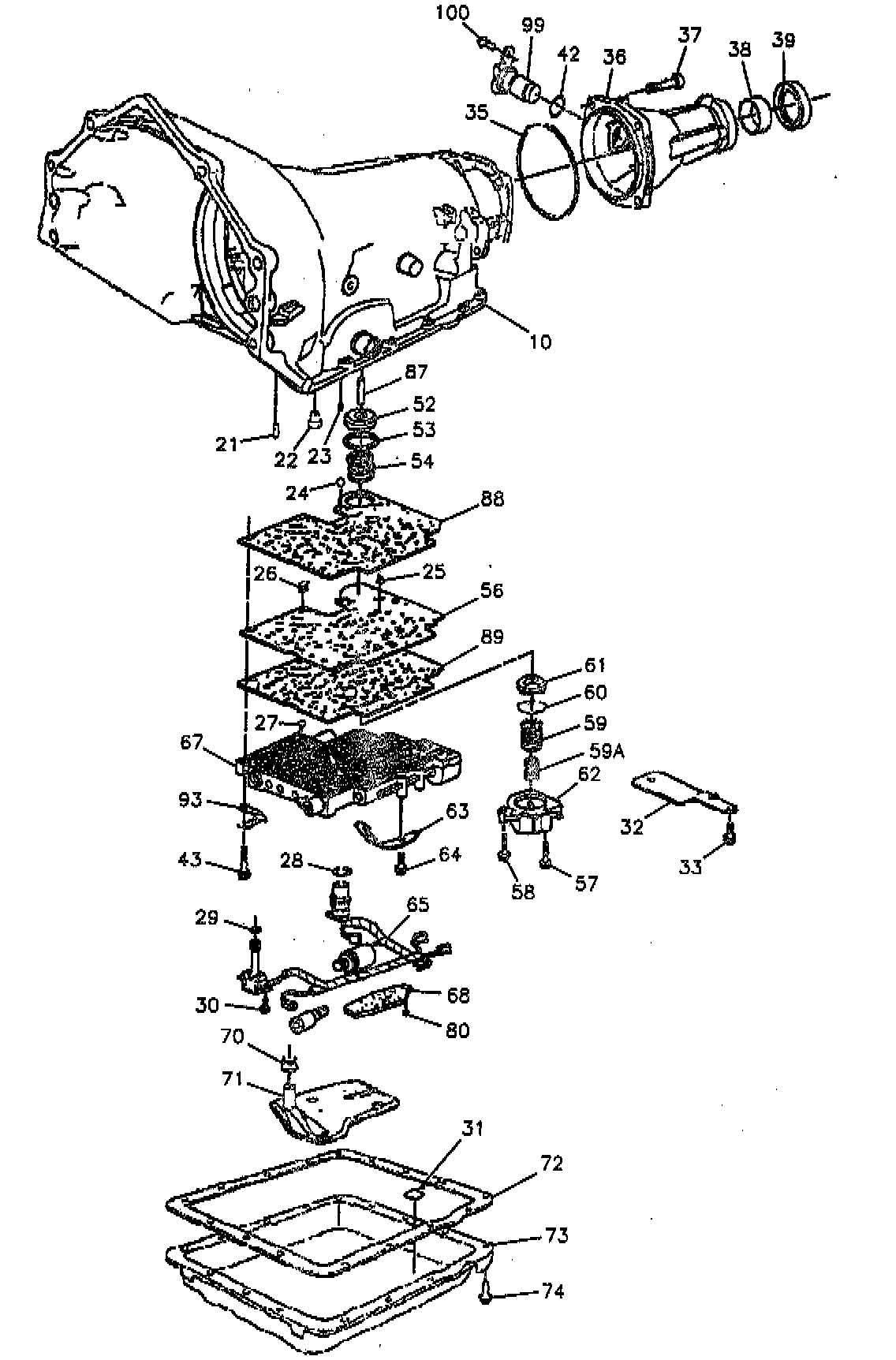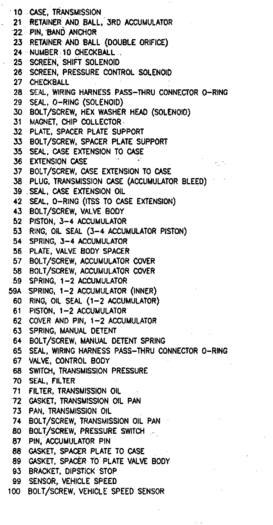 1. Transmission oil pan and filter. Refer to "CHANGING TRANSMISSION FLUID AND FILTER."