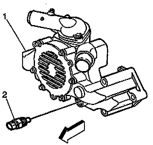 4. Remove the ECT sensor (2) from the engine coolant pump (1).