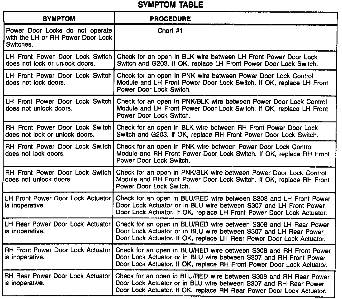 Symptom Table: