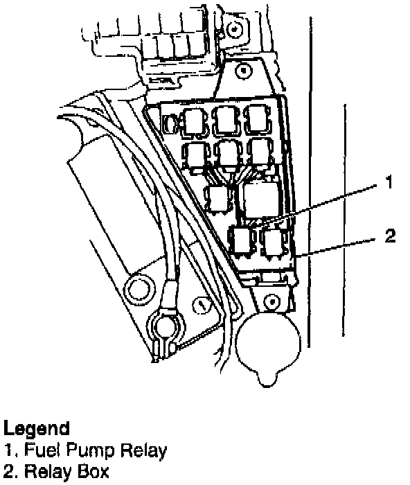 6. Reconnect fuel pump relay to relay box electrical connector.