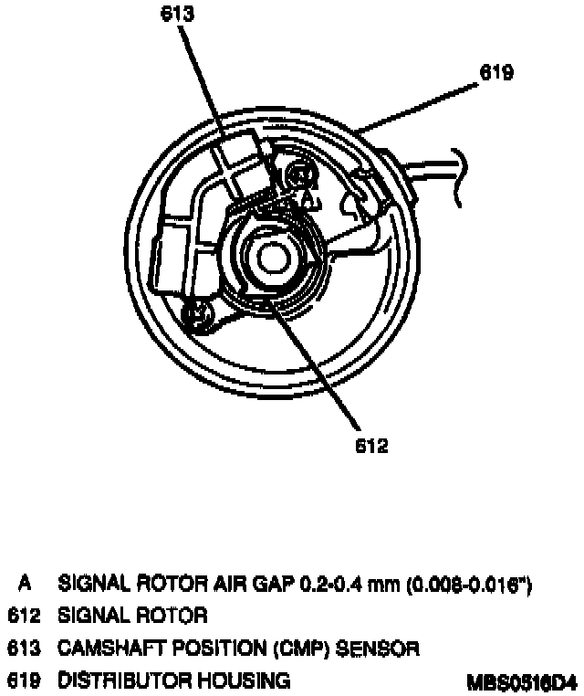 Align a signal rotor ridge with the ridge on the CMP sensor by rotating the signal rotor. Signal rotor air gap to 0.2 to 0.4 mm (0.008 to 0.016-inch) by moving the CMP sensor in relation to the signal rotor. Tighten CMP sensor retaining screws to 5 Nm (44 lb in).