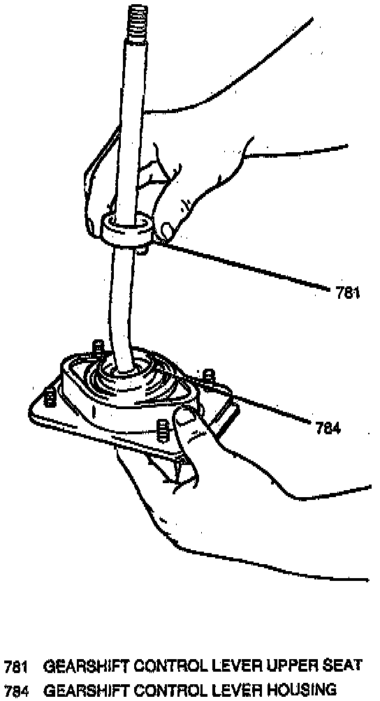 3. Gearshift control lever upper seat and shim into gearshift control lever housing; secure with gearshift control lever snap ring.