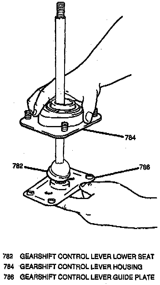 2. Gearshift control lever housing to gearshift control lever guide plate secure With two washers and two gearshift control lever housing-to-guide plate nuts.