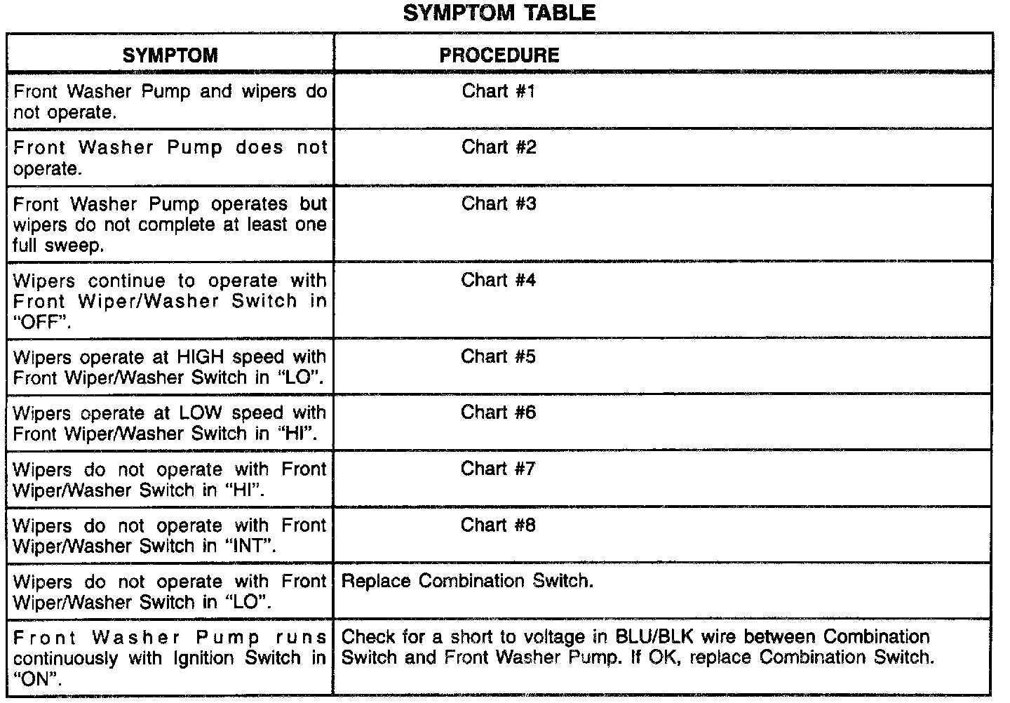 Symptom Table: