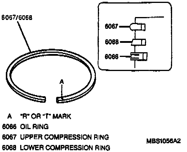- When using marked rings: First and second piston ring(s) have R or T mark. When installing these piston rings to piston, face the marked side of each ring to the top of piston.