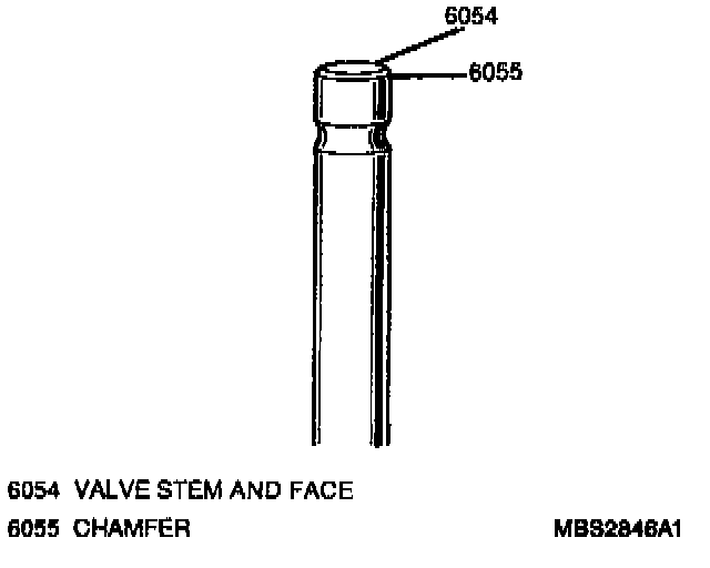 2. Valve stem end face for pitting and wear. If pitting or wear is found, valve stem end may be resurfaced. Replace valve if chamfer area is excessively worn.