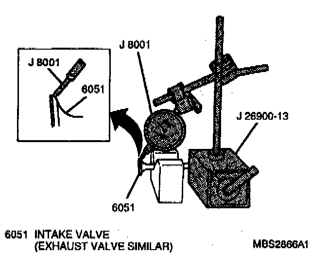 2. Measure each valve for radial runout using a Dial Indicator Set with a Magnetic Base and V block. To measure runout, rotate valve slowly. If measured runout exceeds limit of 0.08 mm (0.003 inch), replace valve.